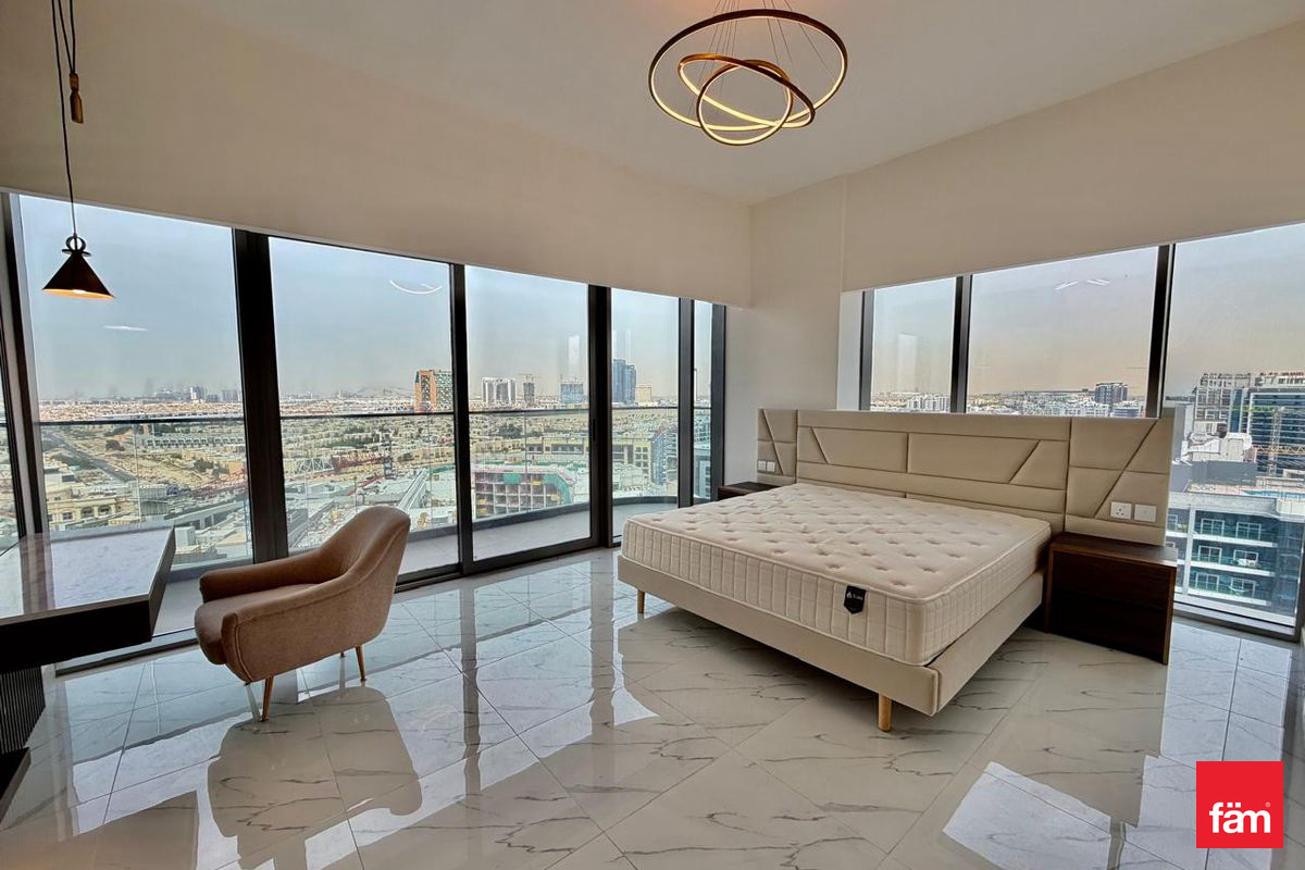 fäm Properties is pleased to present this exquisite 3-bedroom furnished apartment located in the prestigious Adhara Star community, Arjan, Dubai. Boasting a generous built-up area of 1,551 sq.ft., this brand-new residence offers a sophisticated living experience with stunning pool views from a high floor.