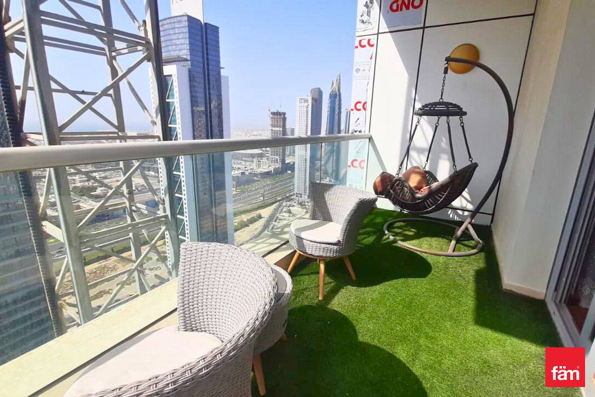fäm Properties proudly present this fully furnished two bedrooms in Executive tower B, EAST HEIGHTS 3, high floor apartment with 2 balconies ,giving 180 view of business bay sheikh zaid road and saw view