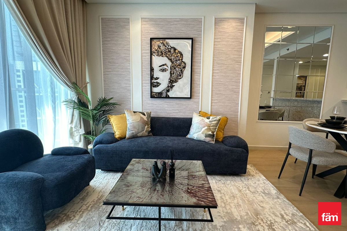 This fully furnished and upgraded residence offers a spacious layout complemented by elegant interiors and high-quality finishes throughout. The apartment features a private balcony with stunning sea and skyline views, creating a bright and sophisticated living environment.