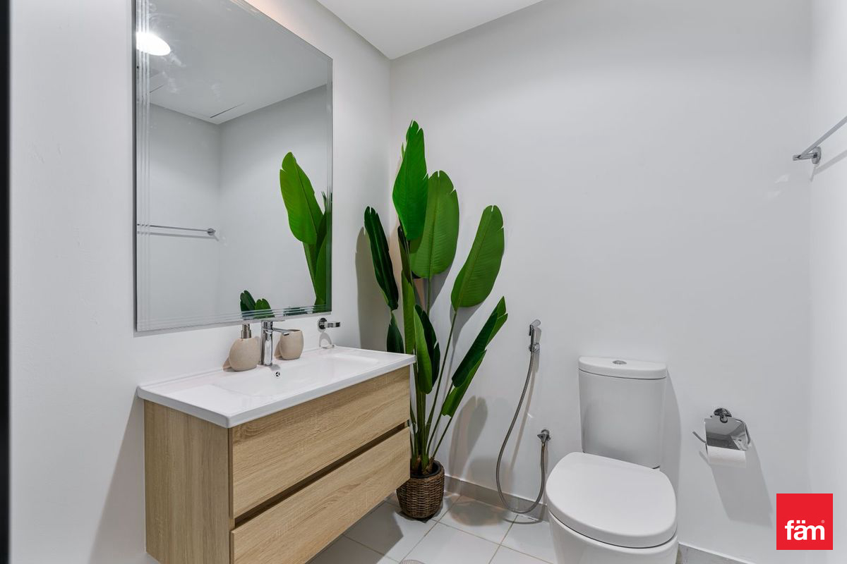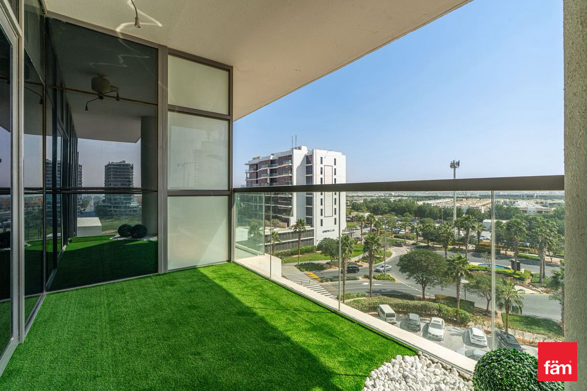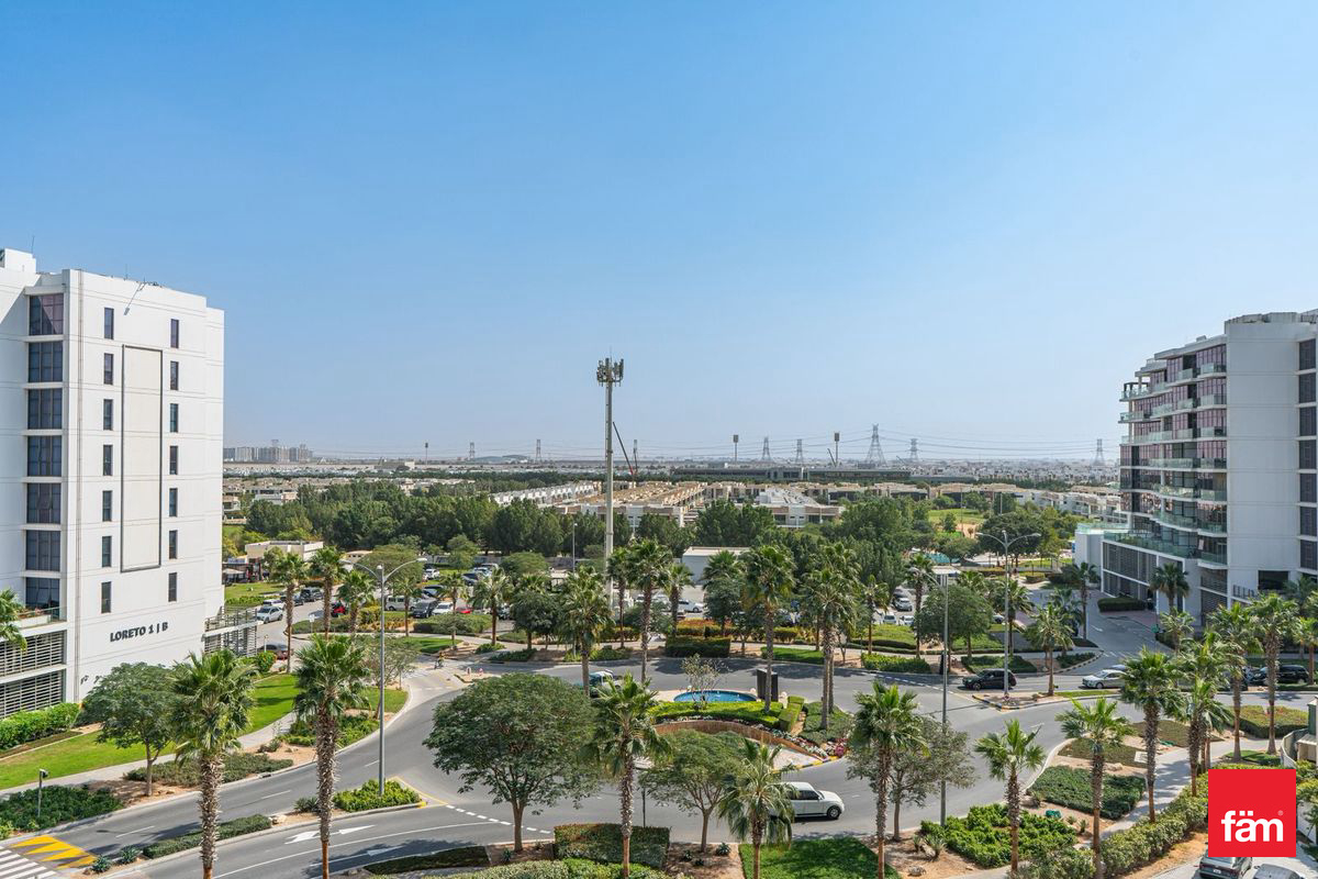 The property includes a well-appointed bathroom and benefits from air conditioning to keep you comfortable year-round. Positioned on a high floor, residents can enjoy enhanced privacy and panoramic views over the lush, green surroundings of Damac Hills.