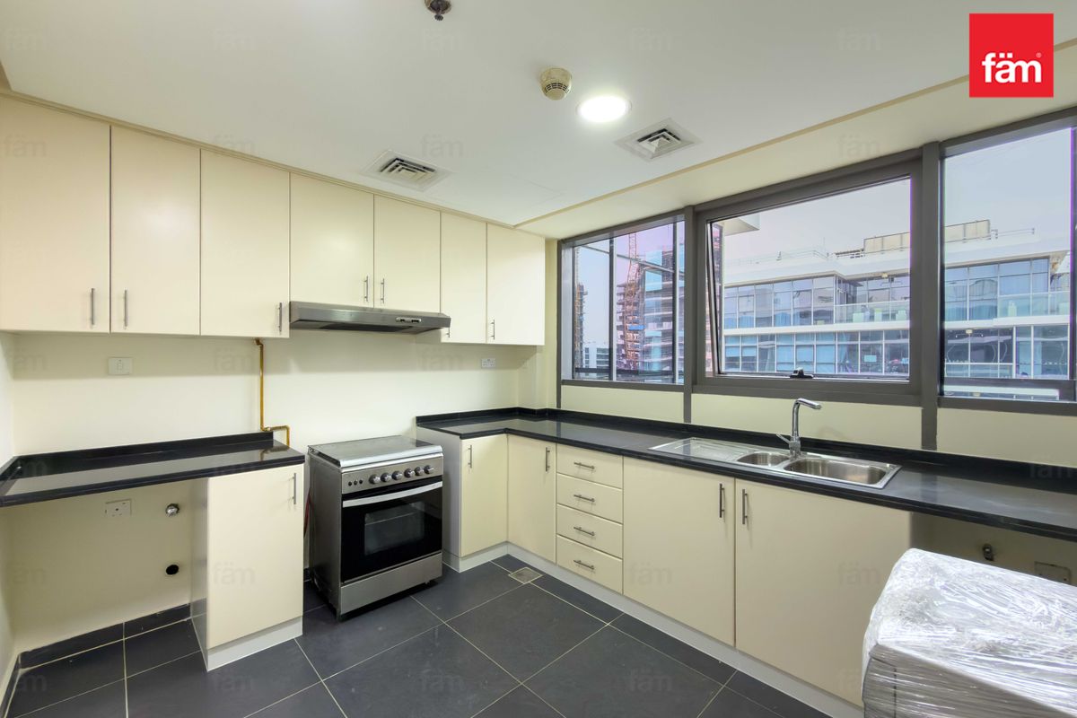 The apartment also includes a separate maid’s room with bathroom, a fully fitted closed kitchen with ample storage, and a practical layout ideal for families looking for space, comfort, and a premium community lifestyle.