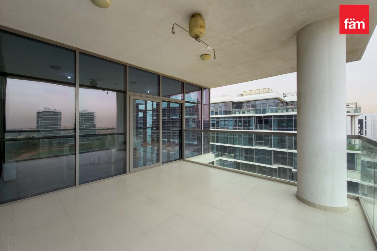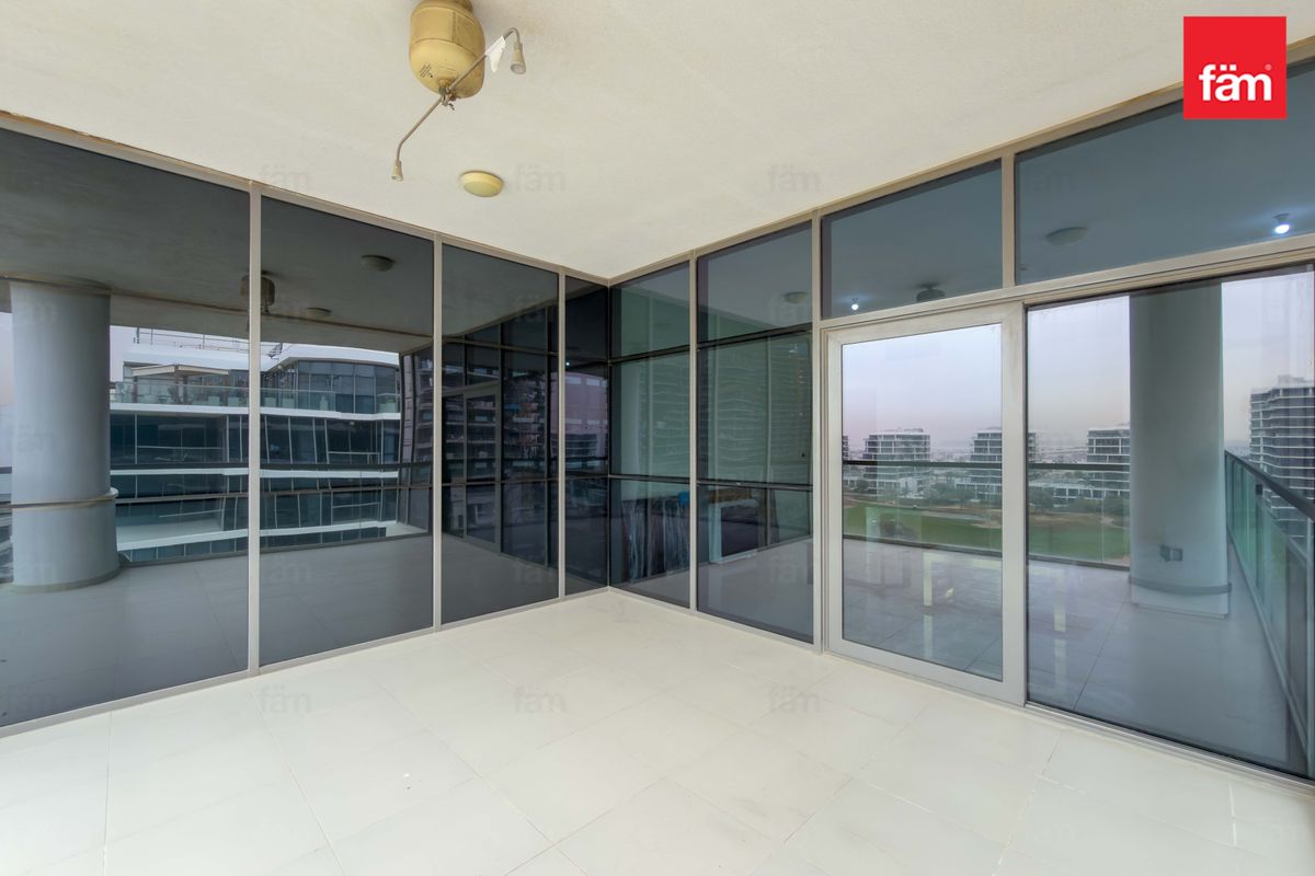fäm Properties is proud to present this exceptionally spacious 3-bedroom + maid’s room apartment in Golf Panorama B, DAMAC Hills, featuring a large terrace and stunning golf course views.