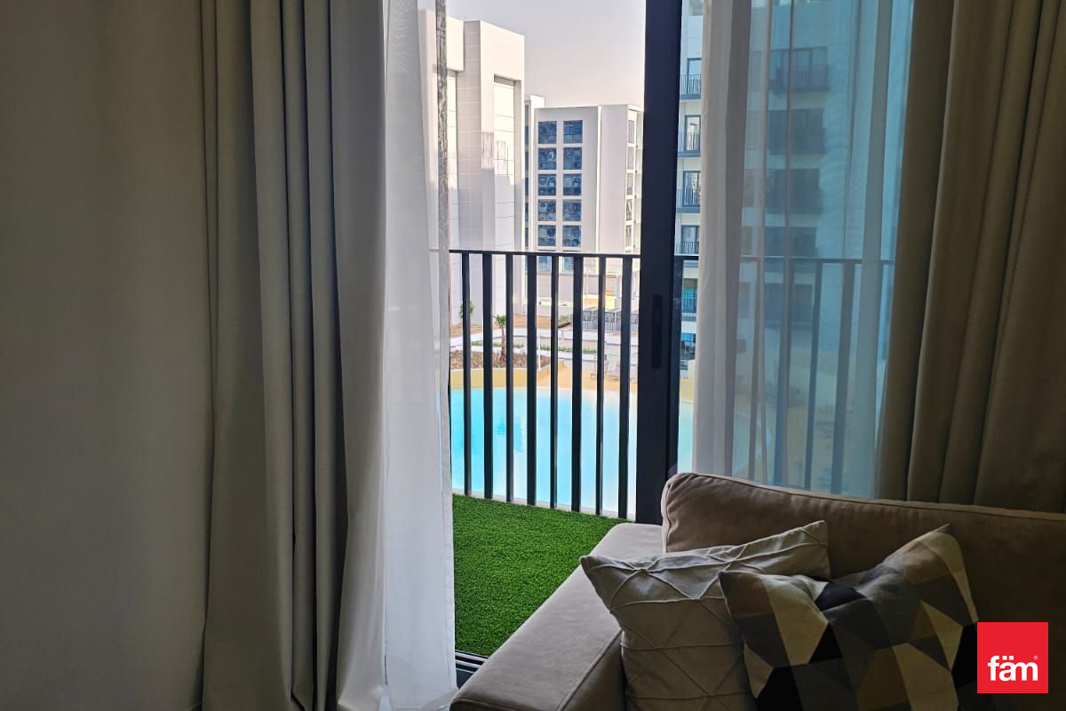 • Balcony with open pool and community view.